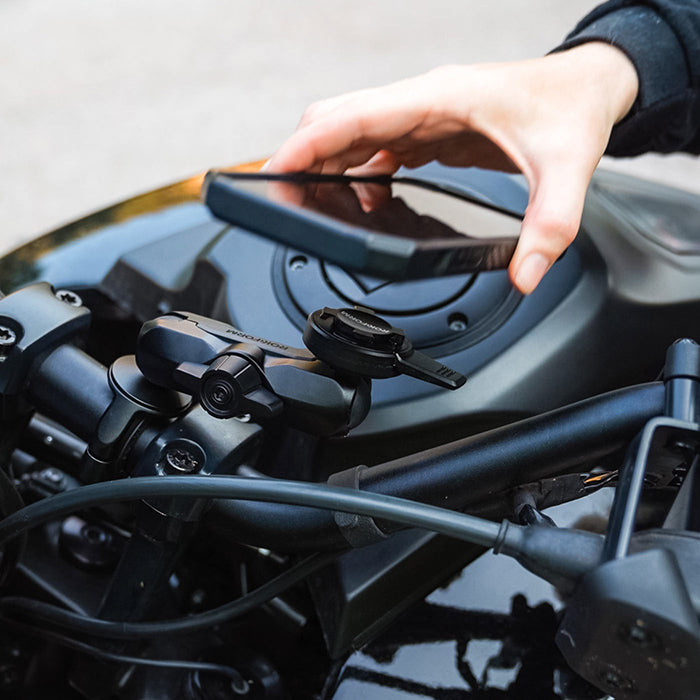 The RokLock™ twist lock system on our iPhone 16 phone cases can be secured to our RokLock car, bike, or golf cart mounts.
