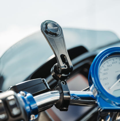 Motorcycle phone handlebar mount attachments for Harley Davidson, Metric and Indian Motorcycles.