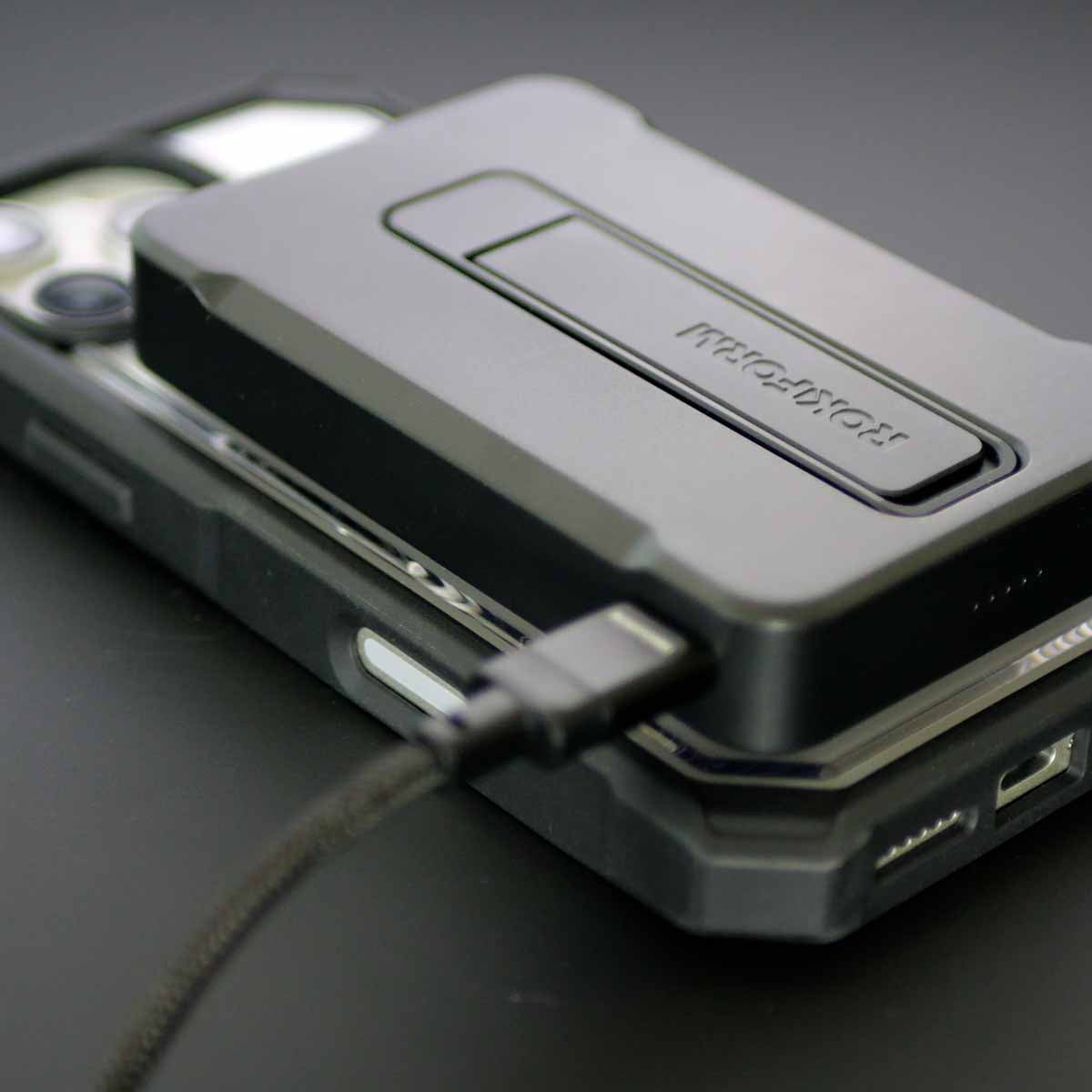 The Power Banks are designed to work with all Rokform cases (Rugged, Crystal, Slim) that support MagSafe. For wireless charging, the magnetic plug must be removed.
