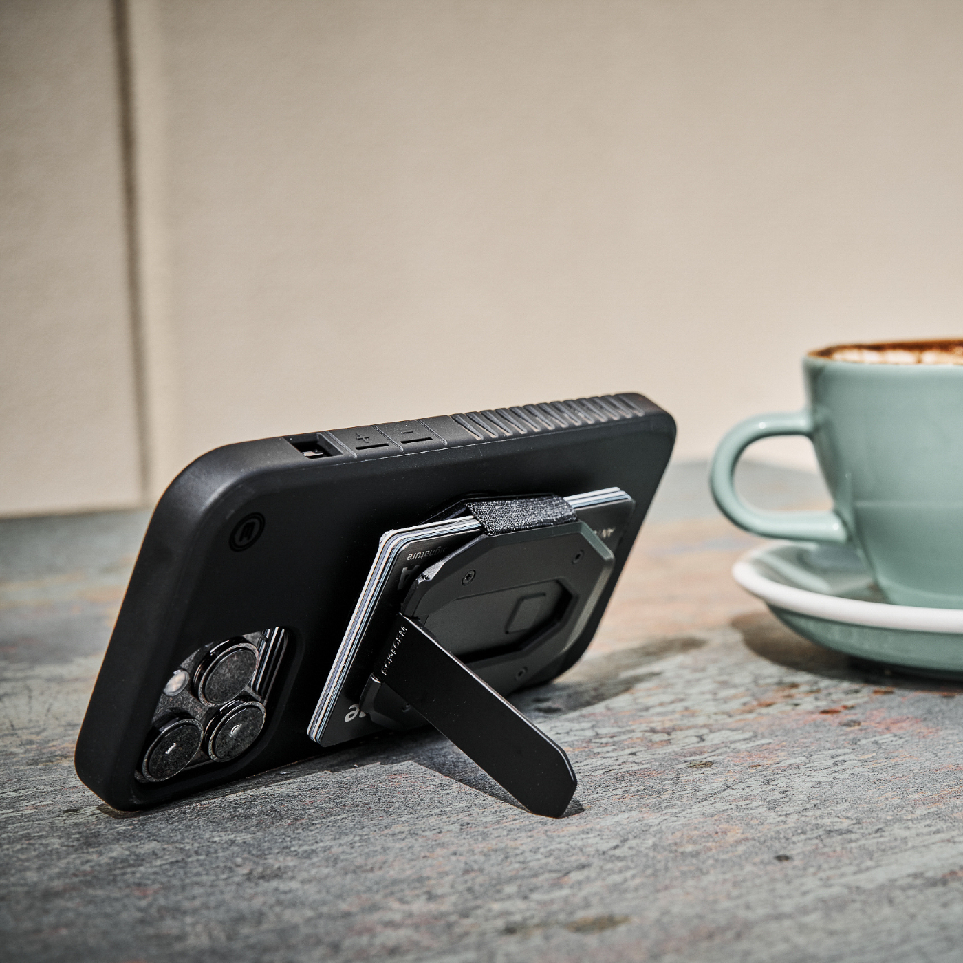 Designed to work exclusively with MagSafe® cases, our phone wallet provides a maximum hold and doubles as a kickstand.
