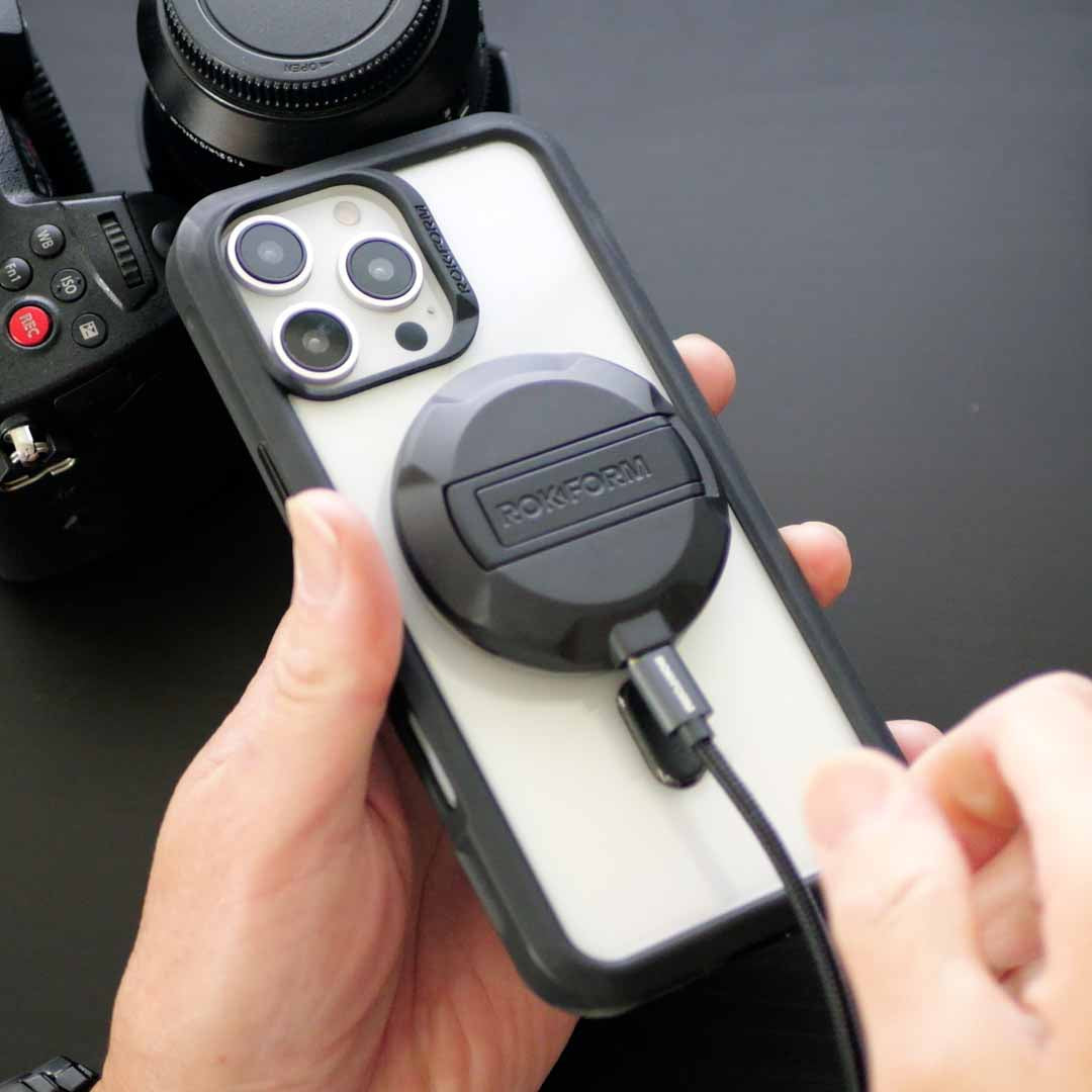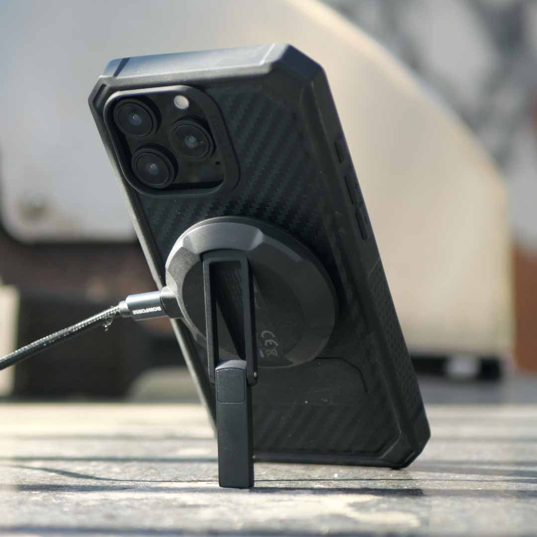 - We go above and beyond providing MagSafe® compatibility - bringing you a magnetic wireless charger stand that pivots, mounts, is thin and lightweight, and has continuity camera capabilities. Pair our magnetic charger stand with our Rokform cases for the perfect duo in strength, durability, style, and comfortability. Please note that the Magnetic Plug in your Rokform case may interfere with wireless charging. Please remove the Magnetic Plug for best results.