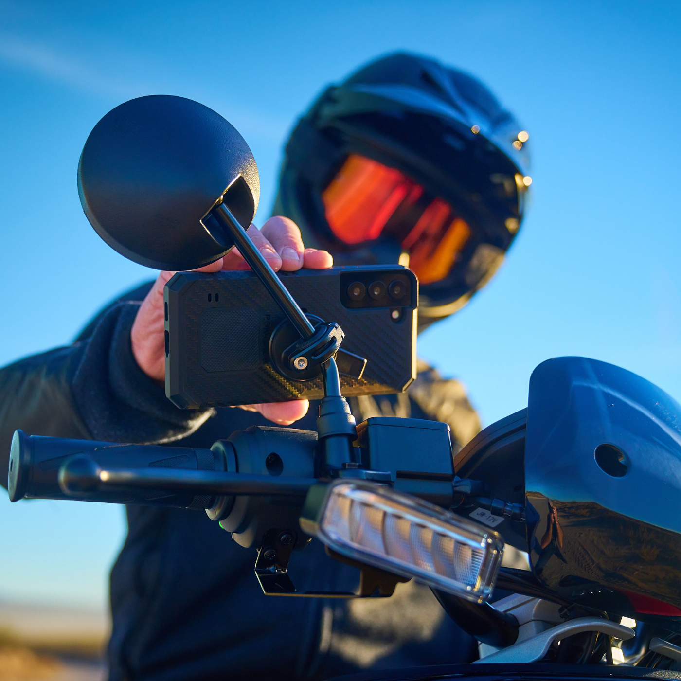 Rokform's rearview mirror phone holder is more than just a mount - it's a transformative accessory. We integrate your smartphone with your rear-view mirrors to provide you with convenience, safety, and accessibility on the road wherever your travels take you. You get hands-free usage on any vehicle. And you'll also get the security of knowing that your phone is held securely in place over every sort of terrain. You can attach your device securely with a simple twist, then remove it with another twist. Keeping your phone safe has never been so reliable or so convenient.