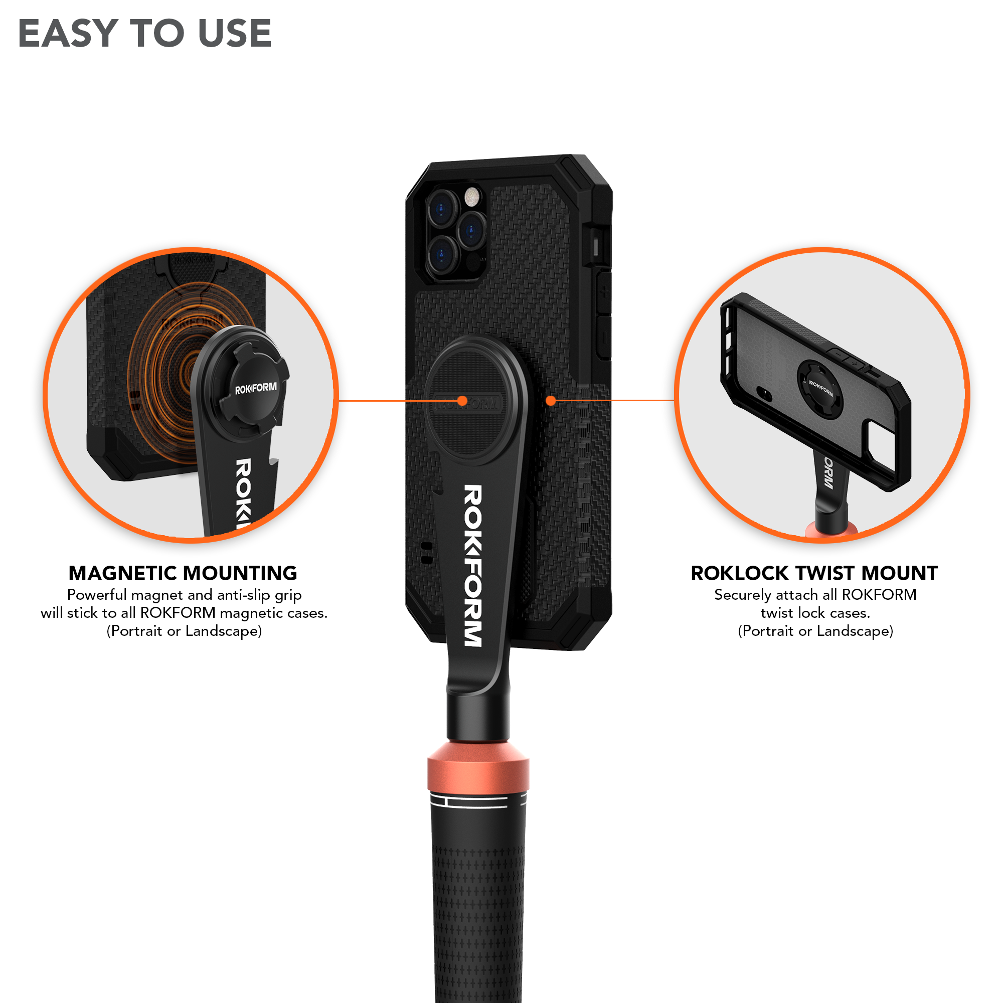 The best way to improve your golf game is to watch footage of your swing. But getting a good video can be challenging when you're on the course alone. With Rokform's Golf Shooter Pro Magnetic Monopod, you always get stable, clear footage. We engineered our golf phone stand for use on the course or at home. You can elevate your golf game and improve your swing analysis without fear of your phone falling. Like our tough, durable phone cases and accessories, our monopod is built to last.